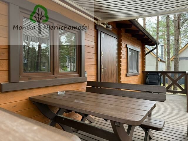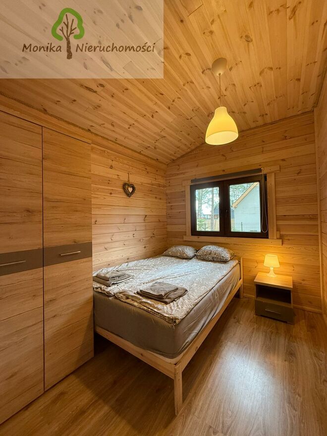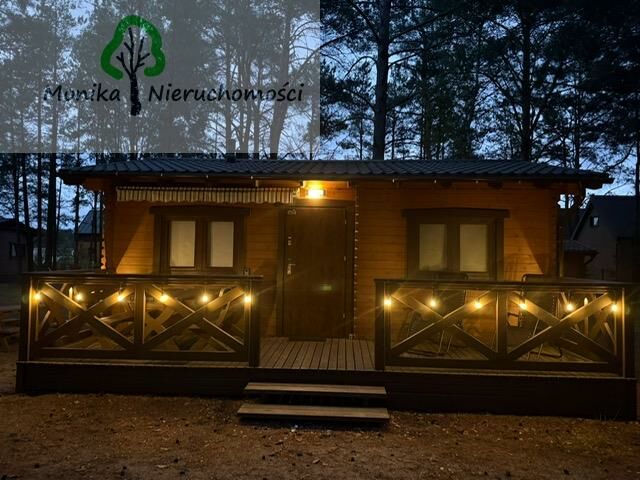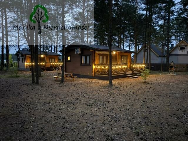 Domki konstrukcji drewnianej o pow. 35 m2 (7mx5m) i taras 14 m2 (7mx2m).