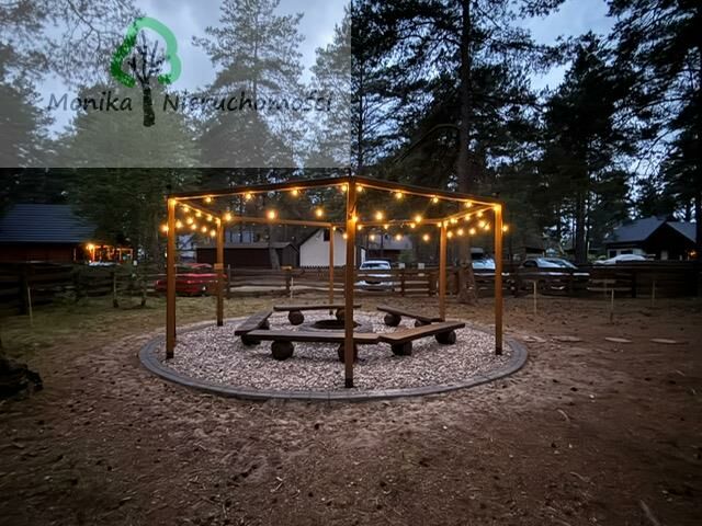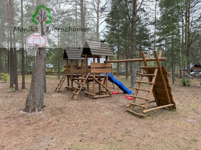 Teren ogrodzony, położony w otoczeniu lasu i zabudowy letniskowej.